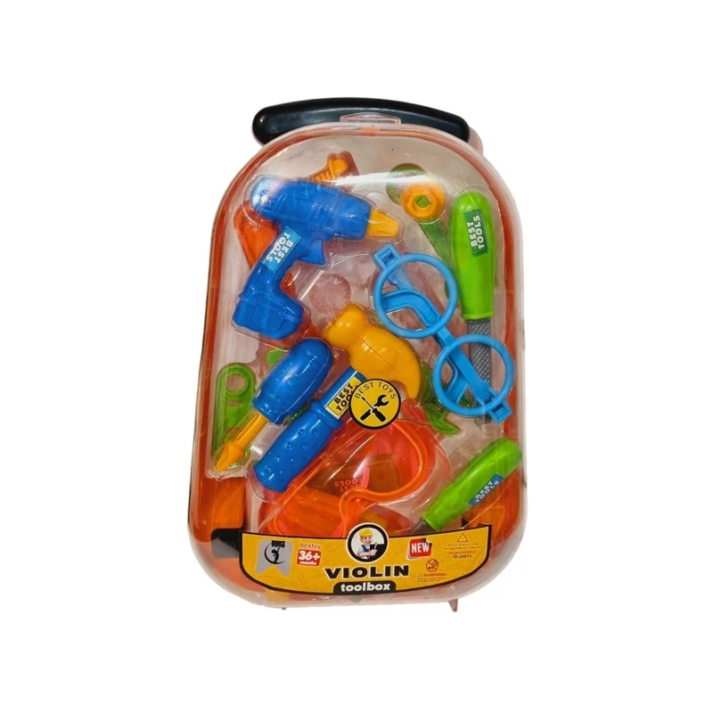 - *مجموعه کامل ابزار*: شامل ابزارهای مختلفی چون پیچ گوشتی، چکش، آچار و دیگر لوازم کار که هر کدام در اندازهای مناسب برای دستان کوچک کودک طراحی شدهاند.